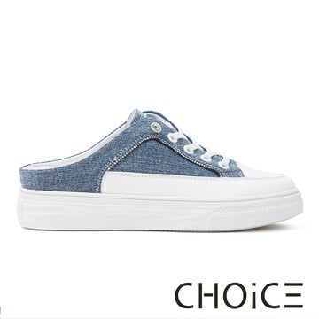 CHOiCE 壓紋印花真皮免綁帶厚底休閒鞋 白色 #38369
