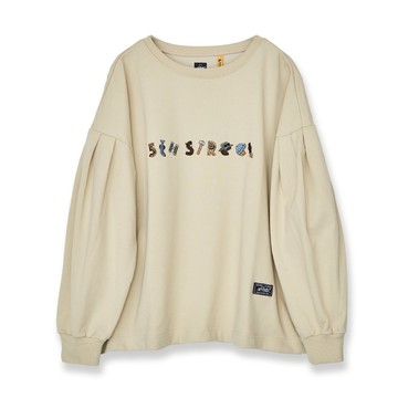 5th STREET|女裝|露營零件繡花圖案長袖T恤|杏色