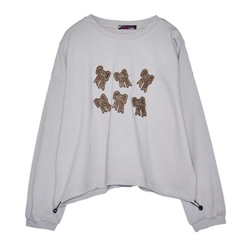 5th STREET|女裝|蝴蝶結繡花圖案長袖T恤|灰色