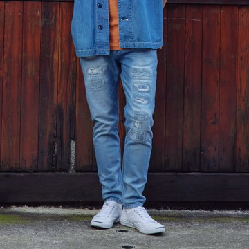 江戶勝|男裝|貼布經典直筒丹寧長褲