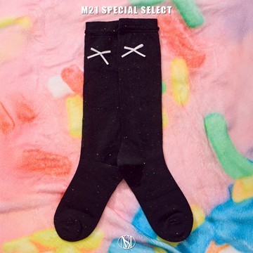 MISS 21 The Ribbon! QQ彩色點點蝴蝶結造型堆堆泡泡襪-黑