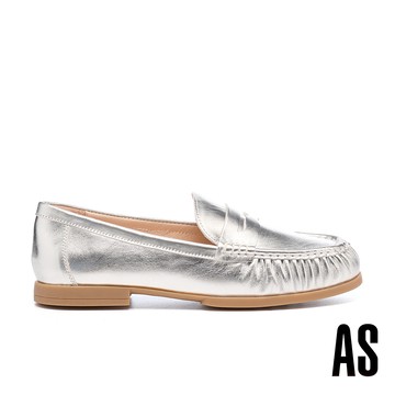 AS 日常質感純色全真皮便仕樂福低跟鞋-銀