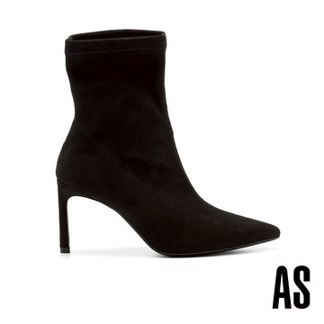 BYHUE 極簡日常純色羊麂皮軟芯高跟短靴-柔霧黑