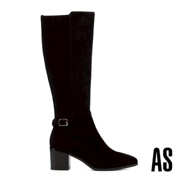 AS 輕奢時尚LOGO拉鍊羊麂皮尖頭高跟長靴-黑