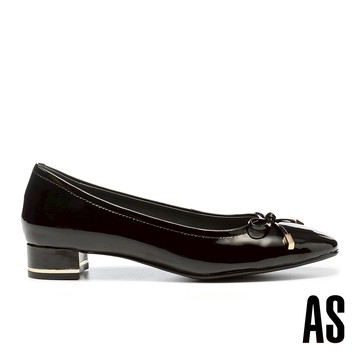 橫線淺口-瑪莉珍尖頭皮鞋-黑色