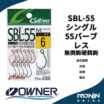 日本Owner C'utiva SBL-55M シングル55バーブレス 路亞 無倒鉤硬餌鉤 米諾 鉛筆 顫泳 波趴 H110