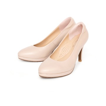 芯太軟 細膩壓紋斜口金邊高跟鞋 杏桃粉 (603048)