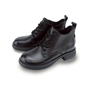 時尚黑色皮革側拉鍊厚底短靴.白鳥麗子