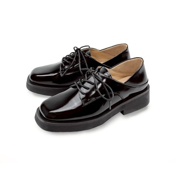 褶皺牛漆皮 / 學院風圓頭復古牛津鞋 / 手工製