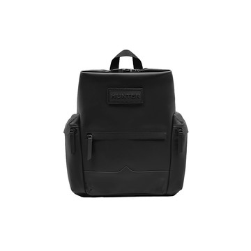 上方開扣橡膠塗層皮革後背包-黑色