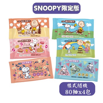 芊柔SNOOPY史努比純水濕紙巾80抽*4包入(四款圖案隨機出貨)摩達客推薦_廠商直送