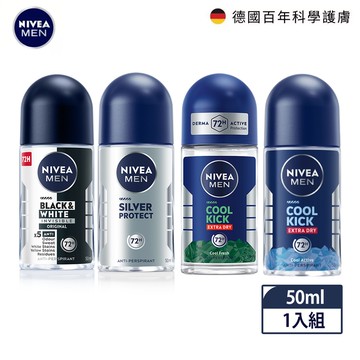 【NIVEA 妮維雅】3入組 男士止汗爽身乳液 系列 50ml (止汗滾珠)