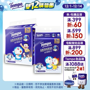 Tempo 哆啦A夢限量版 3層極厚隨掛隨抽妙用紙巾 200抽x12包/箱