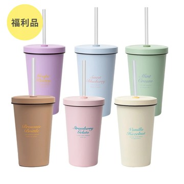 【Oolab 良杯製所】(福利品) 冰淇淋系列陶瓷易潔層吸管杯550ml (六色) 附24cm吸管