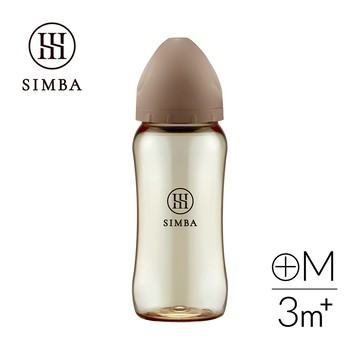 Simba蘊蜜鉑金PPSU寬口防脹氣奶瓶360ml(栗粉)-全齡適用