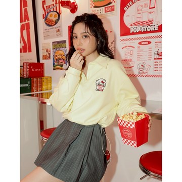 AIR SPACE PLUS 【Hello Kitty聯名】柔滑開領POLO上衣(藍/黃)女裝 中大尺碼 棉花糖女孩