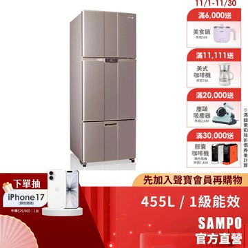 SAMPO聲寶經典系列455L變頻右開三門冰箱 SR-B46DV(R6)-紫燦銀-含基本安裝+舊機回收