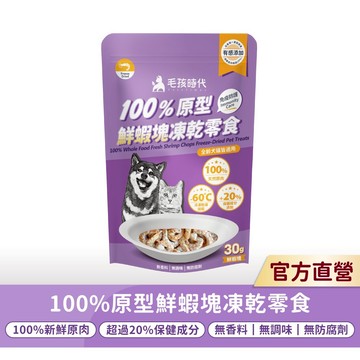 【毛孩時代】100%原型鮮蝦塊凍乾零食30g(免疫保健/犬貓凍乾/犬貓零食/貓咪凍乾/貓咪零食)