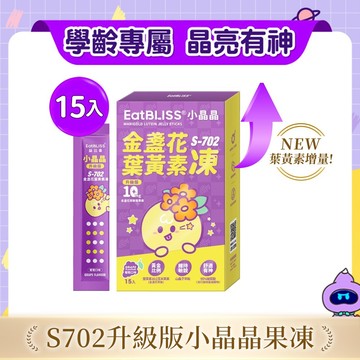 【Eatbliss 益比喜】(買1送1) S702小晶晶金盞花凍含葉黃素15入+寶倍成長高鈣凍15入(葡萄口味+草莓優格口味)
