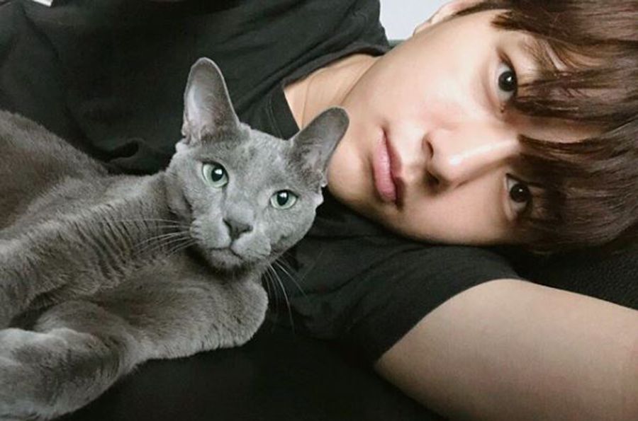 金明洙養了一隻俄羅斯藍貓,取名叫「星」。不少人都說,金明洙養了星之後,一人一貓長得越來越像。星和主人一樣,也是貓界大帥哥呢~