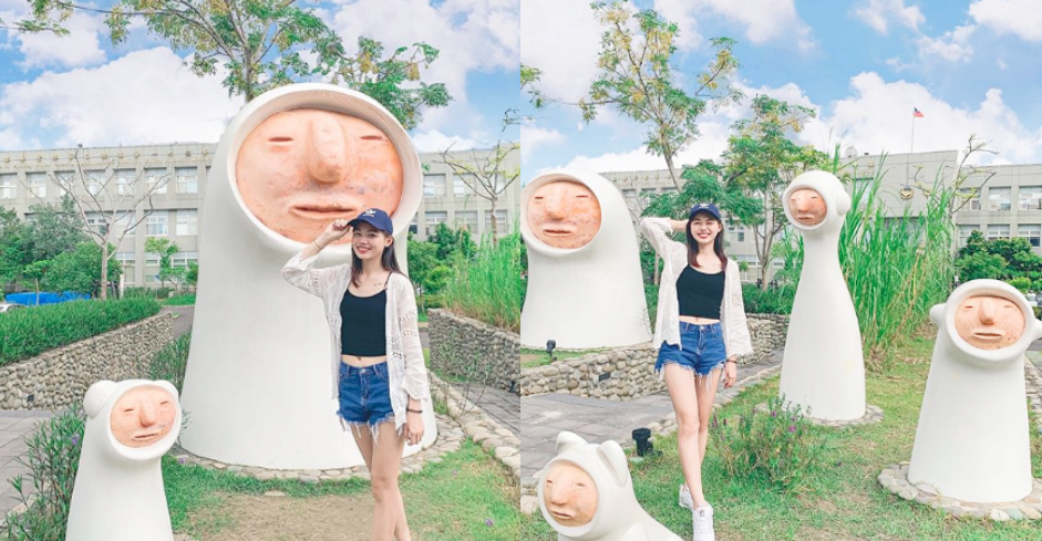 戶外公共藝術區,以芒草為背景、醜萌療癒系的公共藝術作品《蔦松家》,來到這兒一定要合照打卡。古怪的表情有點像公仔醜比頭的樣子,但人家這個創作是以蔦松文化時期出土於道爺遺址的文物「人面陶偶」為發想,是南科館代表性考古文物,不要這樣玷污他啦(笑死)。