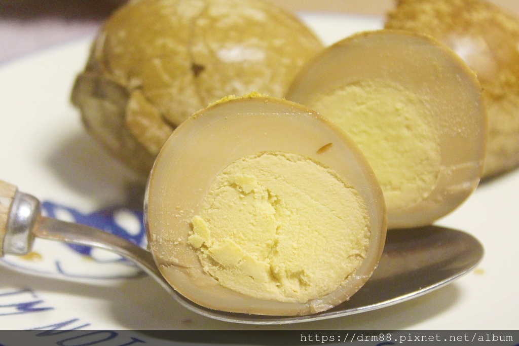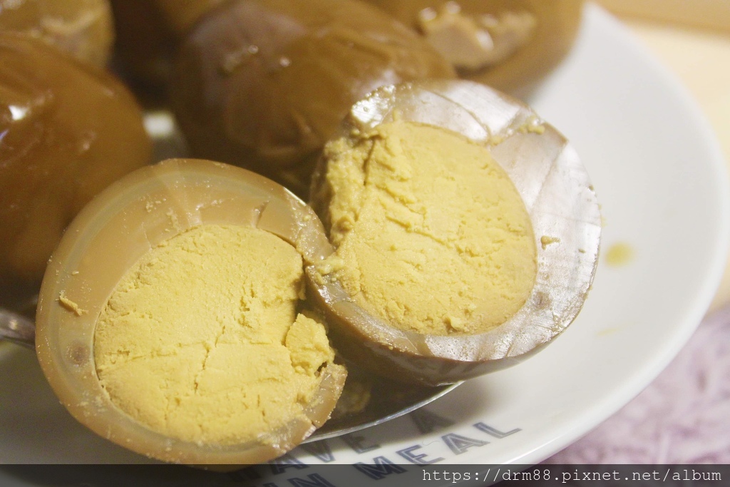 鐵滷蛋吃起來有種Q嫩些,中間的蛋黃是比較粉感綿密的,不太需要咀嚼就能在口中慢慢的化開,
