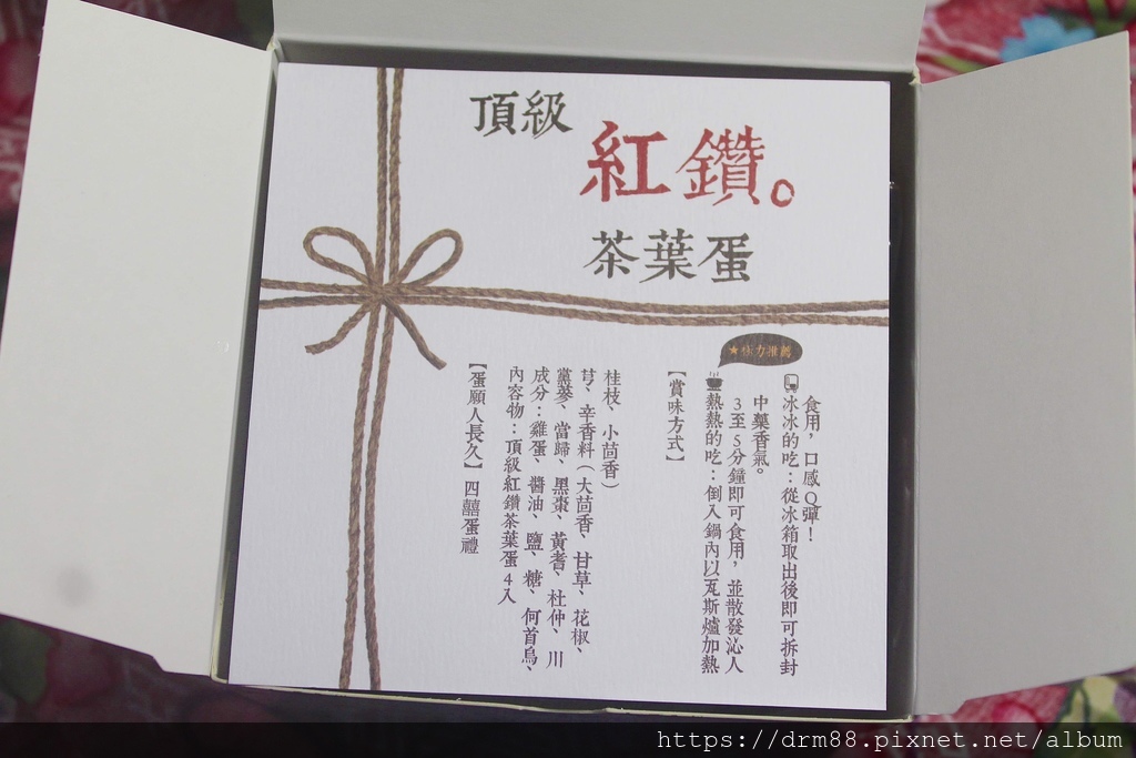 紙盒內除了有四顆頂級紅鑽茶葉蛋外,還有一張貼心的小卡片~