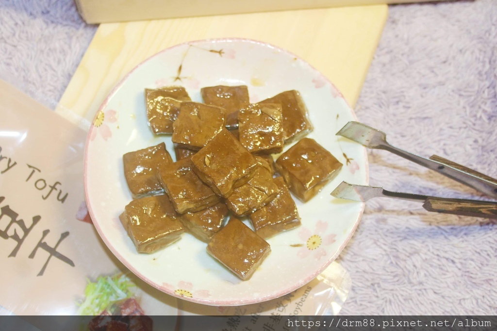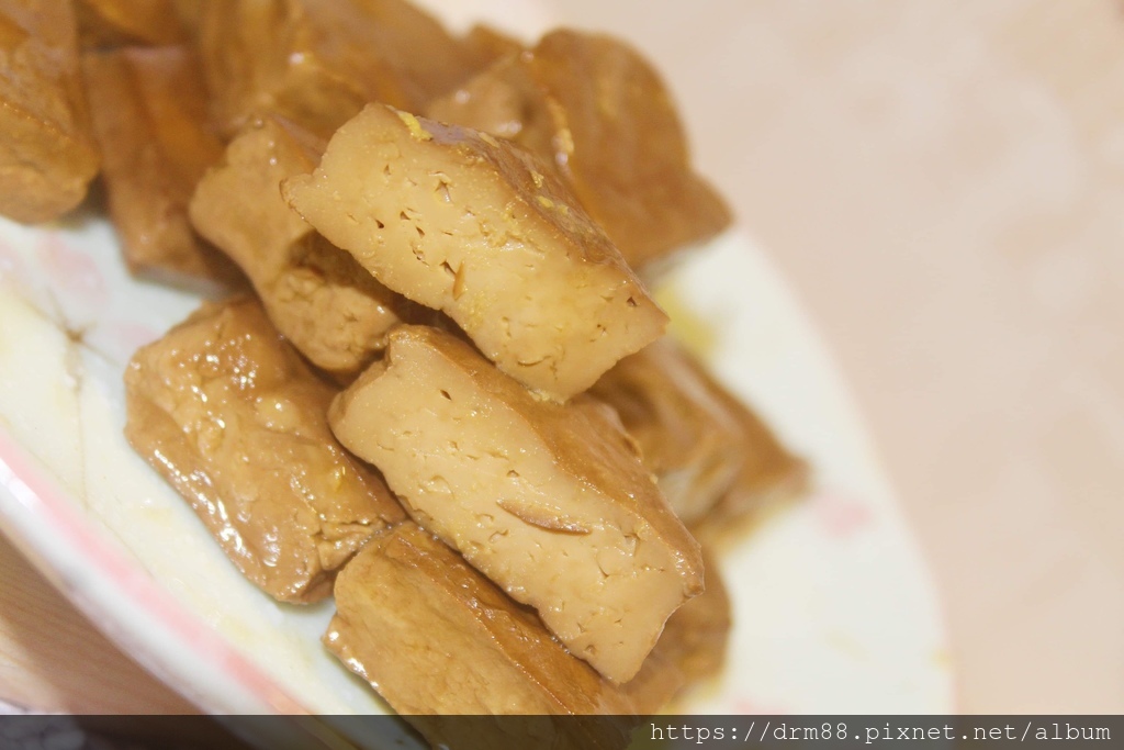 蒜味豆干每一塊看起來都很濕潤呢,裡頭吸附著精華滷汁,