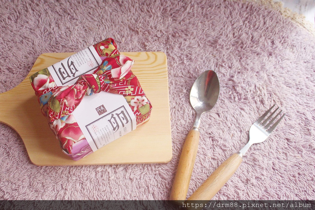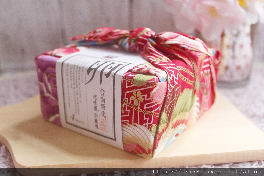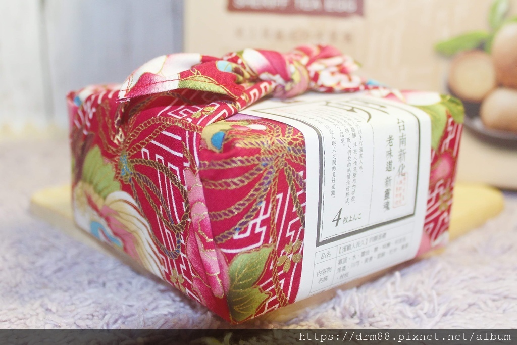 四囍蛋禮的包裝相當的別緻,使用了傳統的花布包裹在外頭,