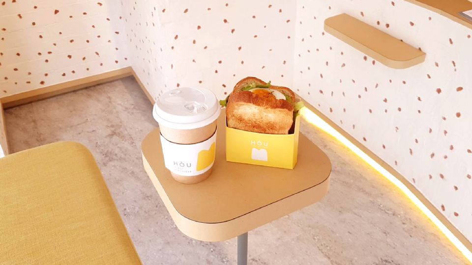整間鵝黃色調超萌的「HÒU TOAST and COFFEE」!連吐司盒都好可愛~