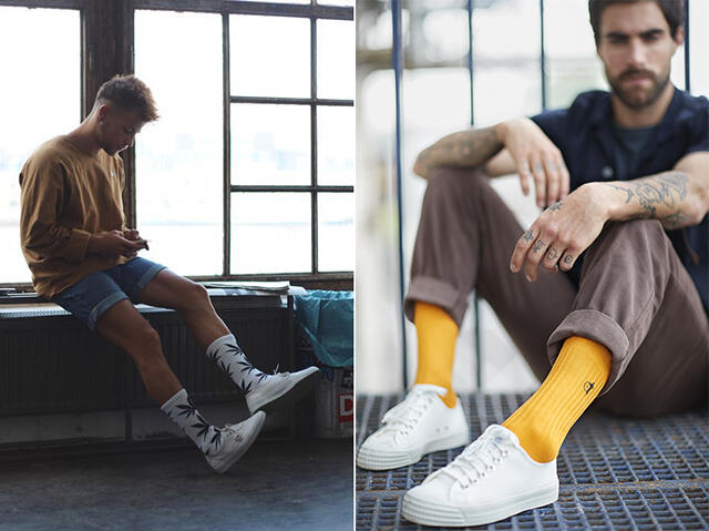 最後一點必須列入考量的便是「花色」,最基本也最常見的就是「素色襪」,每位型男少說都有個三、四雙,除了絕對不能少的黑白兩色,小編建議可以購入一些「特殊色」,像是近期超夯的螢光綠,或是鮮豔的橘黃、紫紅色,依據整體穿搭選用相應色系的襪子,甚至可以大膽嘗試對比色的穿搭。