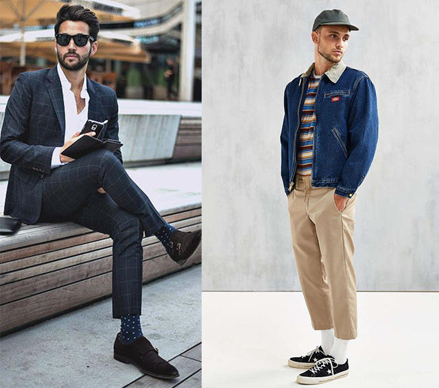 襪子的長短應當根據造型來調整,特別是鞋款,如果你今天穿帆船鞋,穿長襪就會顯得有些奇怪,看不見的隱形襪才是首選;若穿正式感較強烈的皮鞋,則建議搭配高筒紳士襪,會顯得比較禮貌;而運動鞋比較彈性,搭配LOGO短襪或是帶有特殊印花的長襪都OK!