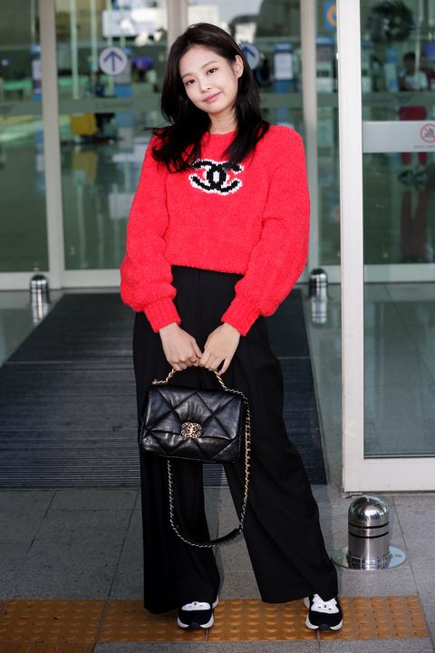 今年四位成員皆有受不同品牌之邀,征戰今年的 2020 春夏時裝周看秀,其中「人間香奈兒」Jennie 當然是出席 Chanel 大秀,機場穿搭走休閒風格,穿著紅色 Logo 毛衣搭配黑色長褲,並揹上最新包款 CHANEL 19 BAG,簡單又搶眼。