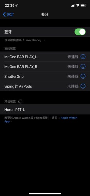 這時候耳機指示燈會紅藍交替閃爍,這時候打開手機藍牙設定可以看到Horen P1T-L,點擊連接。