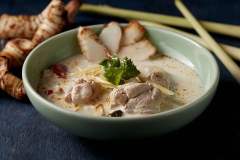起源於泰國故都大城(Ayuttay)的宮廷湯品「椰汁雞湯」,且傳承至阿桐師媽媽的拿手好菜,香氣濃郁辛香不嗆喉,搭配多汁軟嫩的雞肉,讓人一試上癮。