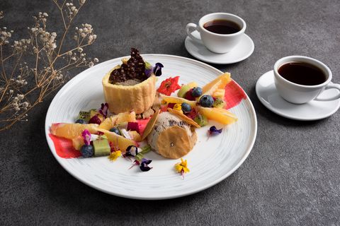 濃醇的焙茶冰淇淋與抹茶凍,搭配香甜的蜜紅豆,日系茶香的清爽口味與手沖坦尚尼亞咖啡結合,最適合在愜意的午茶約會裡享用。