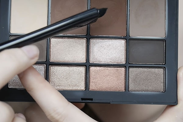 沾取畫面中這個紅棕色,將它上在妳的眼線處微微平拉