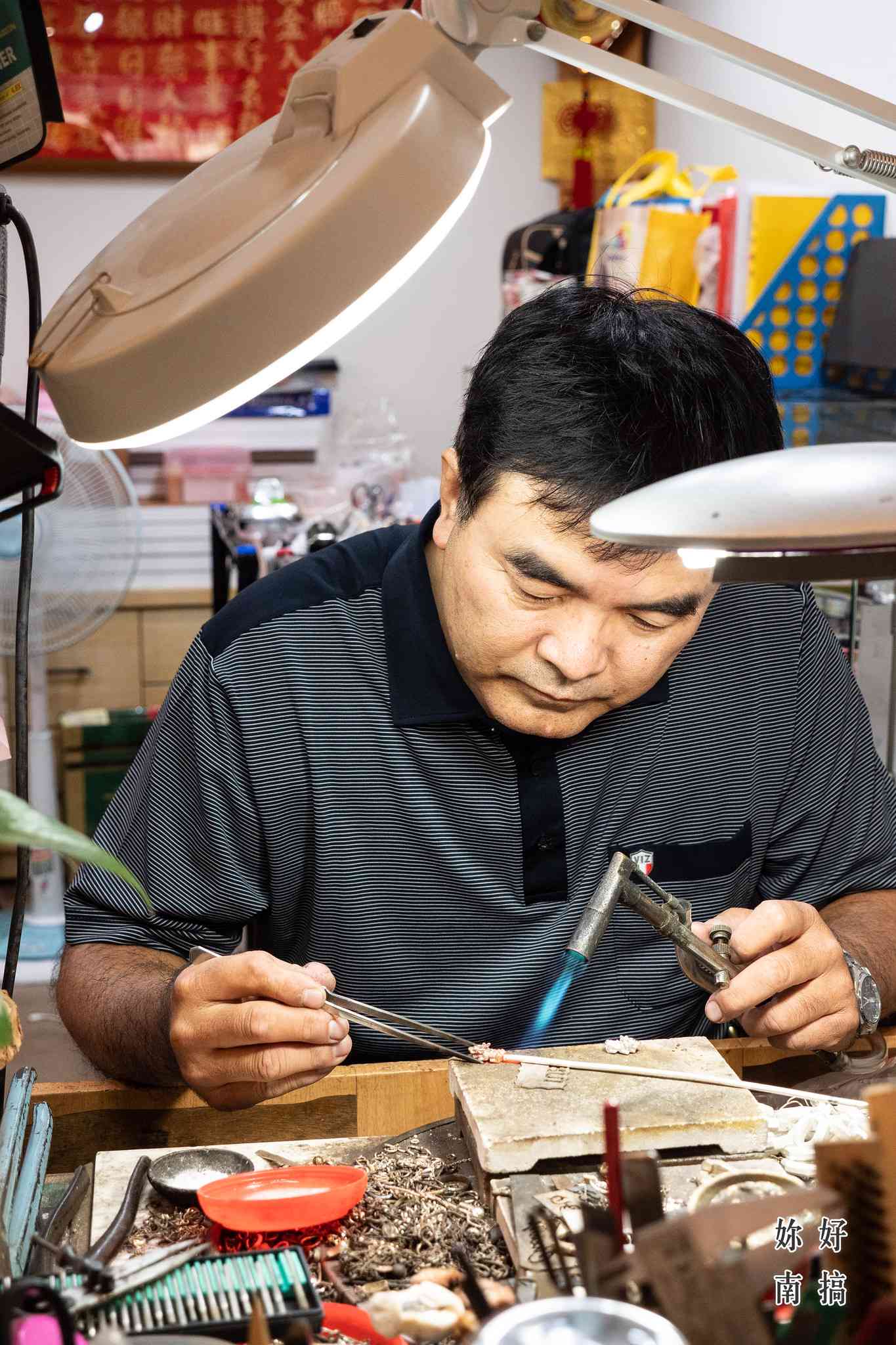 銀器飄香工坊,一家臥虎藏龍的銀飾店。一推開門銀光閃閃,琳瑯滿目的銀飾瞬間攫住眼球,從手鍊、項鍊、戒指等飾品,到大大小小的風水擺設小物都一應俱全。但你可能想不到,這家氣勢十足的店舖,最初只是在夜市的小小銀飾修理攤。