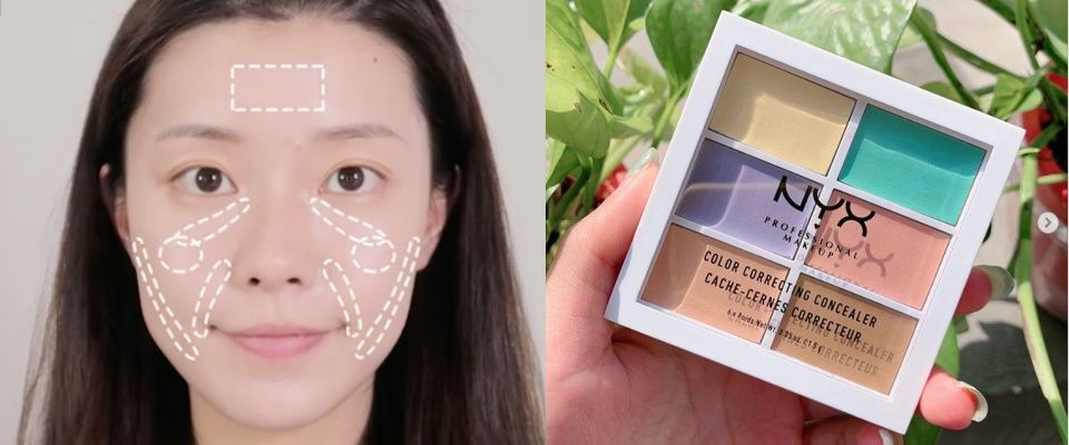 選一個粉色或是米白色的遮瑕,輕點在額頭、淚溝、蘋果肌、法令紋、下巴與凹陷的臉頰兩側,並用海綿拍開與底妝融合,以此增加臉部的澎潤感。