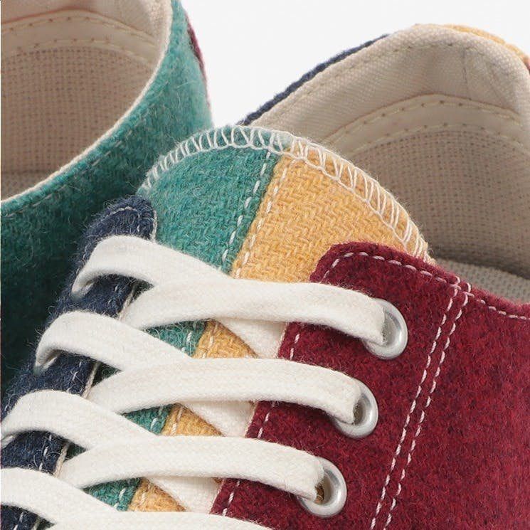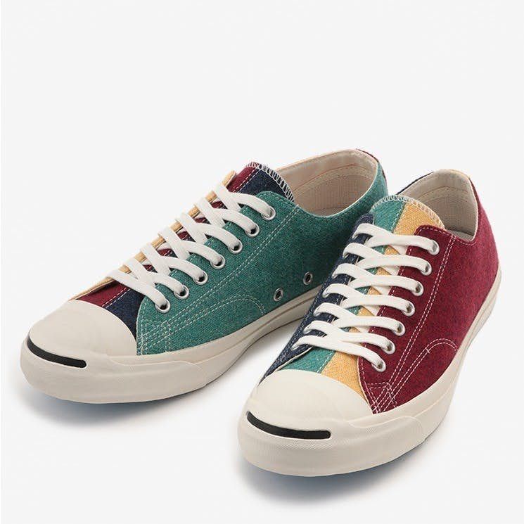 配色大膽搶眼的converse Jack Purcell,以暗紅、深藍、淺黃、草綠色為撞色搭配四種不同色系卻有著莫名的和諧感,毛呢材質讓四色都有冬季特色並且各色中都帶有灰色調,因此並不會讓人覺得配色衝突,不論上衣穿什麼顏色都能輕鬆和鞋子搭配到,懶人必備!