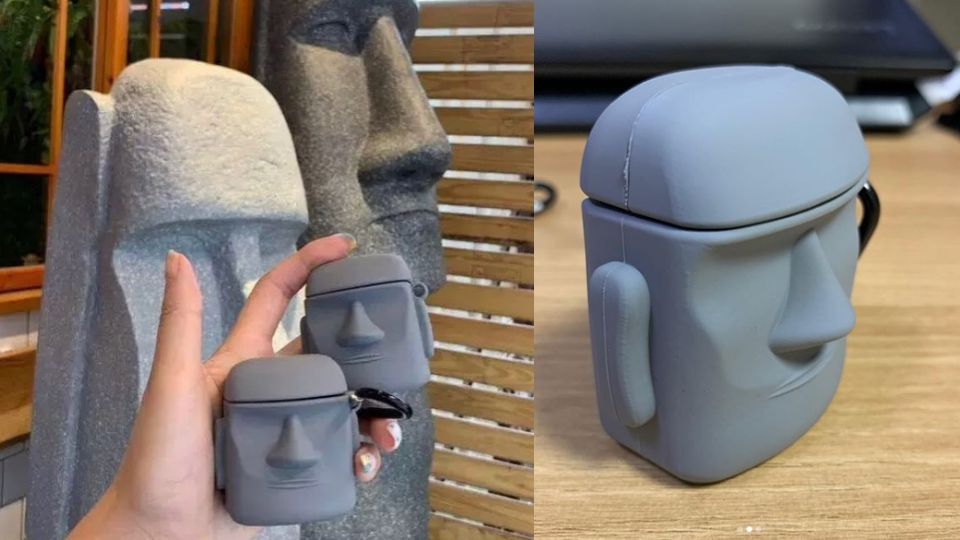 簡約的摩艾石像整體為岩石灰色,以立體和凹槽製造出眼睛、嘴巴、鼻子的輪廓,由於簡潔且可愛的造型深受大家的喜歡。在instagram上不少韓妞都換上摩艾AirPods Case拍照打卡,拿著小摩艾去跟大摩艾石像,呆萌可愛度滿分!