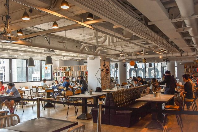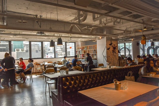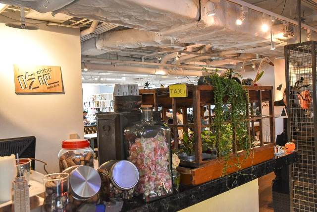 台北西門町意舍酒店『吃吧』巔覆傳統飯店華麗餐飲、跳脫飯店餐廳制式的設計,空間寬敞明亮,並保留誠品武昌店的特殊天井設計,讓自然光照射進來,並以開放式廚房、分享式交誼桌椅,利用小巧可愛的收藏品、紀念品或書籍隔間架,以及綠色植栽擺飾等,打造出一個隨性自在的用餐新空間