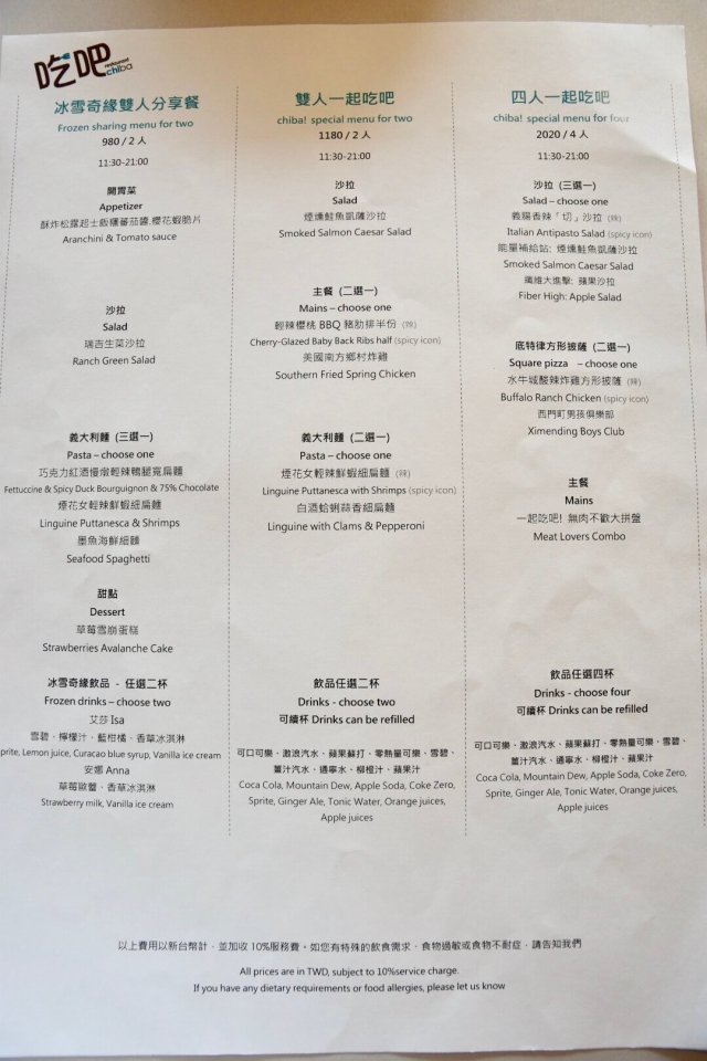 台北西門町意舍酒店『吃吧』菜單-