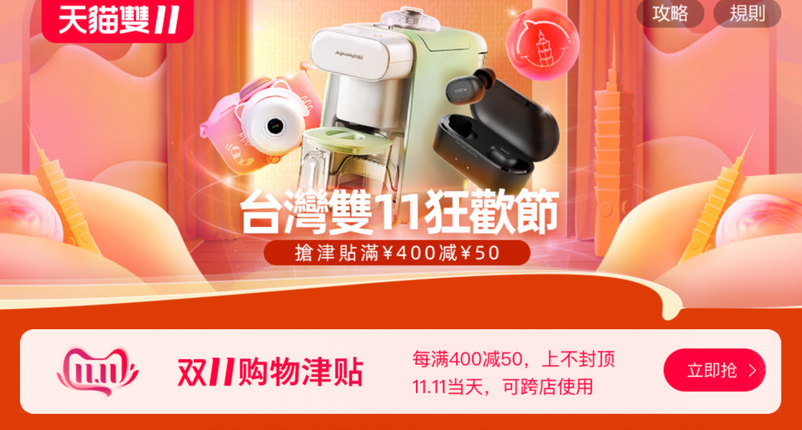 折扣真的是打到手骨折也要買,全《淘寶》店家與《天貓》可跨店累積,買滿400立馬現折50,別以為這麼少有什麼好買的!折合台幣可是足足現省215元,而且還無上限買滿800再折100!你絕對沒聽錯,這折扣連我都想買了。而且每家商店都推出超殺優惠,讓你絕對能買好買滿,把一年沒買的通通補回來~若不知從哪買起看看以下儂編私心推薦清單吧!