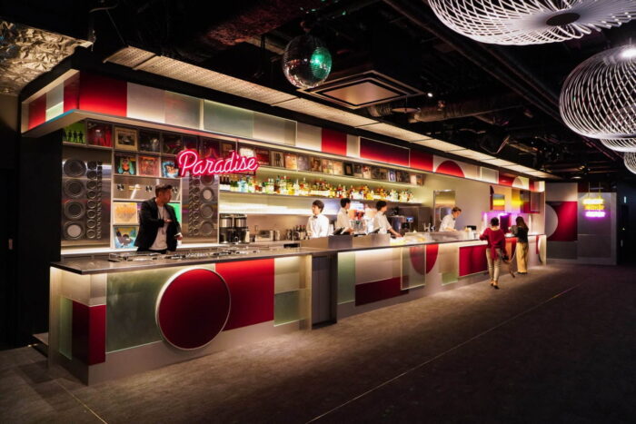 「Paradise Lounge」由英國設計師Tom DIXON團隊量身打造,以音樂酒吧為概念,特別請日本知名DJ田中知之監修,包含該店音樂風格、選曲及播放都精心設計,櫃台旁併設長15公尺的DJ台,很有臨場感。