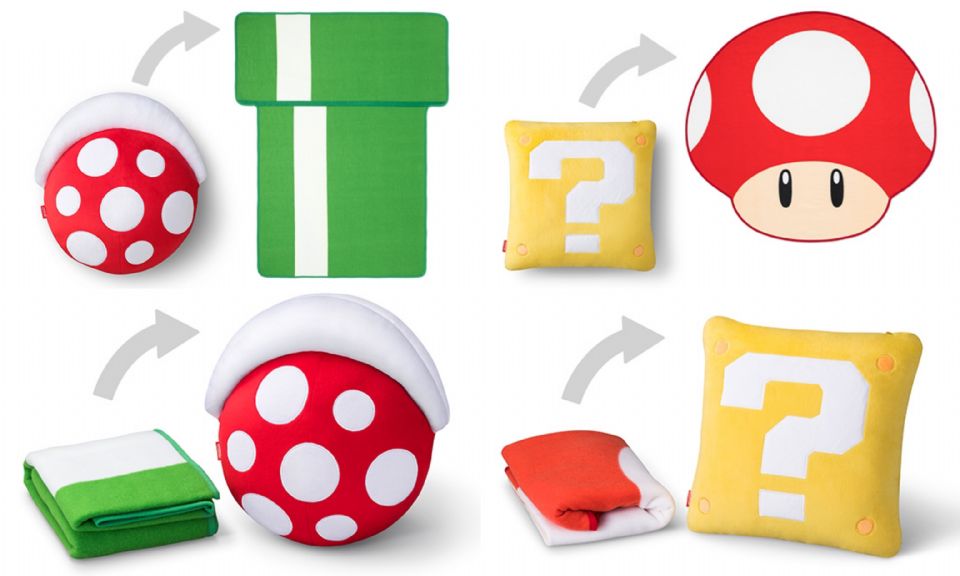 是抱枕也是小毯子~這款在去年12月就已經上市,受到瑪利歐迷們的大大好評!平常可以拿來做沙發上的裝飾,作為抱枕也很柔軟,攤開來是短絨毛的暖暖小毯子,超適合冬天一邊玩著超級瑪利歐一邊蓋著毯子保暖~
