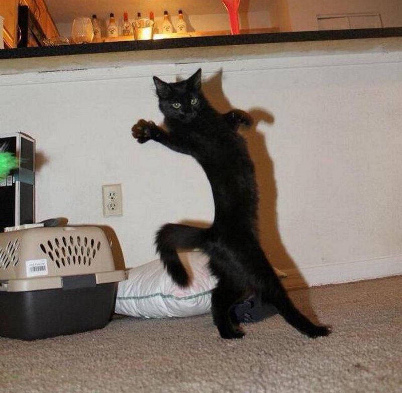 捕捉到這個黑貓站起來的瞬間,好像在跳舞一樣呢~有著修長的身型、標準的舞姿及十分到位的眼神,還有臉上真摯的表情好像在說:「要跟我來支舞嗎?」(笑)