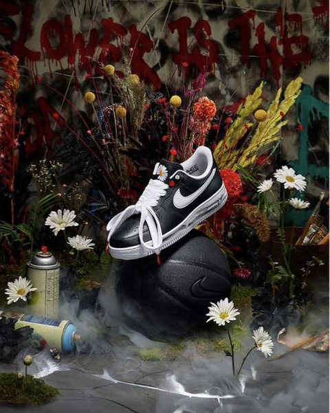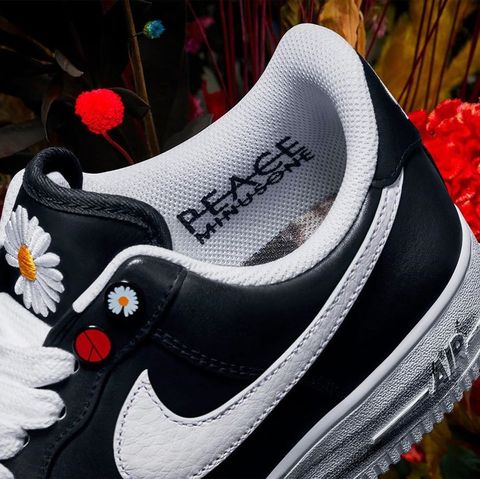 這雙 AIR FORCE 1 Para Noise 球鞋結合的 GD 的個人創作,以黑色搭配 PEACEMINUSONE 經典象徵的雛菊小花刺繡點綴,帥氣中又帶點藝術的可愛氣息,看到球鞋完全就能想到 GD 的穿搭風格呀。