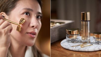 熱愛按摩道具來加強保養效果的小禎,用過雅詩蘭黛專為白金級黑鑽松露雙活萃全新升級版所設計的這支按摩滾輪後簡直驚為天人!特別精算過的角度,能準確地針對輪廓線條進行拉提,也能幫助精華液的滲透與吸收。