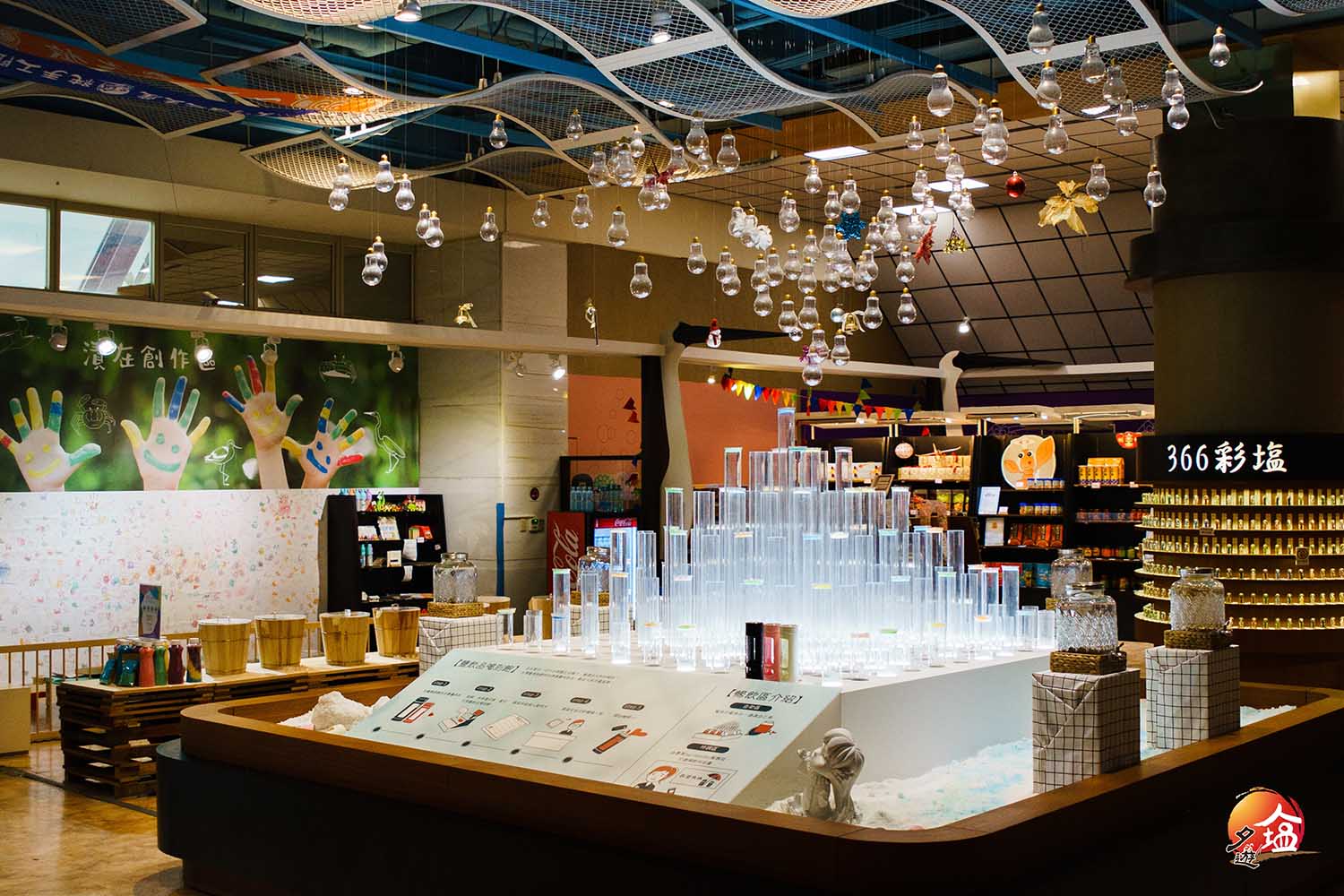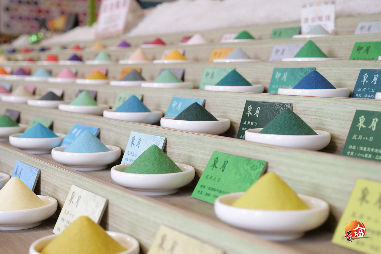 夕遊出張所前身為日治時期鹽的專賣所,現在也賣鹽,但不只有想像中白色的鹽。踏進夕遊出張所很難不被366種色彩的鹽吸引,這是透過日本彩色能量分析調製的366色生日彩鹽,每種鹽都有名字與意義,找到專屬的彩鹽後,還能製成「生日鹽吊飾」,為自己帶來能量與潔淨。